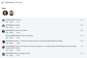 Then, Linked In. People like the political free, professional oriented zone in LI.